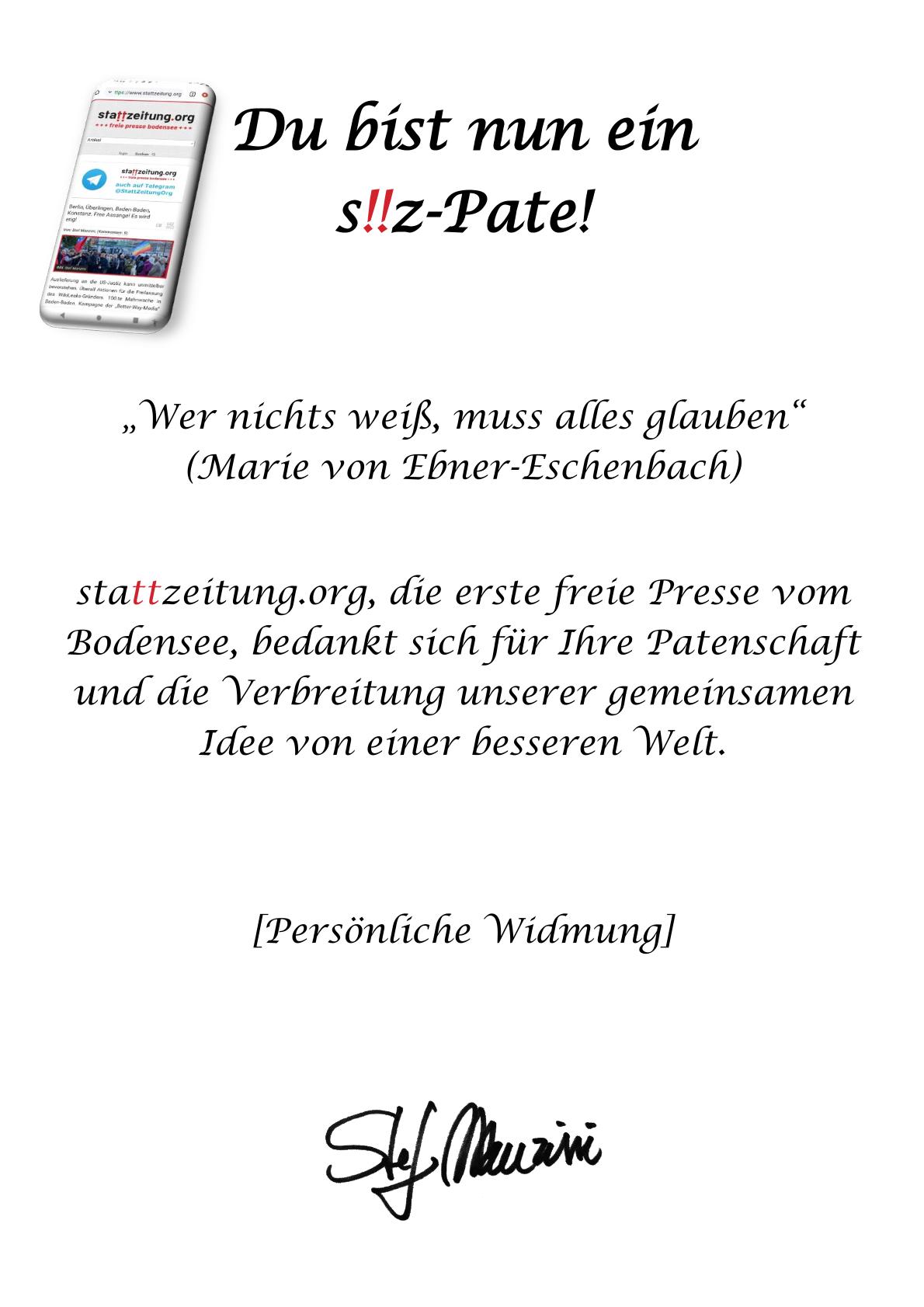 stattZEITUNG.net ist leserfinanziert. Ohne Ihre Unterstützung gibt es diese Arbeit nicht.