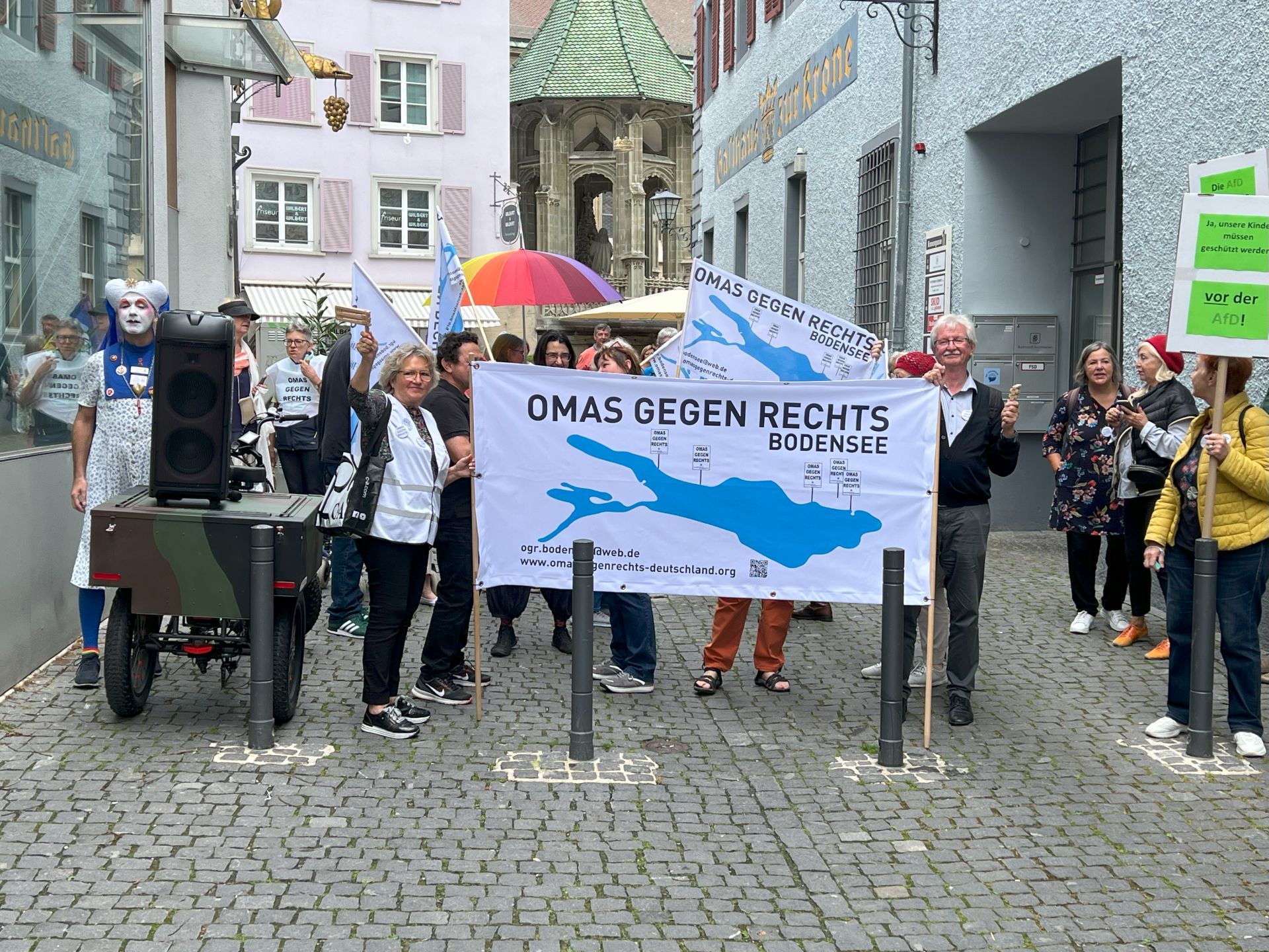 Eingeklemmt zwischen Altstadtgassen, Bushaltestellen, Straßen und dem See standen sich am Samstag, dem 13. Juli, der CSD-Überlingen, die "Omas gegen Rechts“, ihre "Enkel“ von der Antifa und die AfD gegenüber. Die drei erstgenannten natürlich im vereinten Kampf gegen die AfD. Nur der wachsamen Aufmerksamkeit der Polizei, und der umsichtigen und erfahrenen Einsatzleitung von Andreas Rieß ist es zu verdanken, das es im wahrhaft bunten Wirrwarr aus Demonstranten, Gegendemonstranten, Sympathisanten aller Lager, Stadtbevölkerung, Touristen, Bussen, Autos, Fahrrädern und wer weiß was noch alles nicht zu gravierenden Störungen kam. Sieht man einmal ab vom arg bedrängten Rainer Rothfuß (MdB), dem eine Oma mit ihrer Trillerpfeife fast einen Tinnitus bescherte, die Polizei musste klären. Es gab auch einen Antifa-Aktivisten, der wegen grober Störung der AfD-Kundgebung "Schützt unsere Kinder vor der Gendersekte“ von der Polizei im Schutzgriff entfernt werden musste (Bild)- und einen (Verzeihung!) "blanken Hintern“ (Bild, Video), den ein "Antifant“ auf offener Straße der AfD-Bühne entgegenstreckte. Ob das nun der perfekte Enkel der "rechten Omas“ war? Die "Antifa-Touristen“ des Bodenseekreises sind immer wieder für Aktionen, wie einen Stinkefinger, auch gegen den stattzeitungs-Fotografen in Friedrichshafen, gut- und kommen damit meist unbehelligt davon. Auch die Strafanzeige wegen des "Fingers“ verlief damals in Friedrichshafen im Sande. Gewalttätige Schläger sind diese jungen Leute jedoch (bisher) nicht. "AfD-Lügenpack wir haben euren Unsinn satt“ (Video), skandierten die "Omas“, fielen damit unangenehm auf, und heizten Entgleisungen wie gerade beschrieben kräftig an. Als "Pack“ bezeichnete übrigens nur diese links-extreme Truppe ("Omas gegen Rechts“) ihr Gegenüber. Eine AfD-Anhängerin, die gegen diese Beschimpfung "Pack“ Strafanzeige stellen wollte, wurde von den Polizisten abgewiesen. Deeskalation war angesagt, und bis auf das bis hier her aufgezählte gab es auch keine weiteren ernsthaften Auseinandersetzungen. Am Rande des Spektakels fragte Stef Manzini den Geopolitiker und ehemalige CDU-Mitglied, Dr. Rainer Rothfuß, nach den Motiven des blanken Hasses auf die AfD, und wohin das seiner Meinung nach noch führen könnte- nur wenige Stunden vor dem Attentat auf den ehemaligen amerikanischen Präsidenten Donald Trump. Zum Interview mit Rainer Rothfuß geht es hier: "Die Ideologie hat die Hoheit über das Denken übernommen“. Dr. Rainer Rothfuß, AfD.