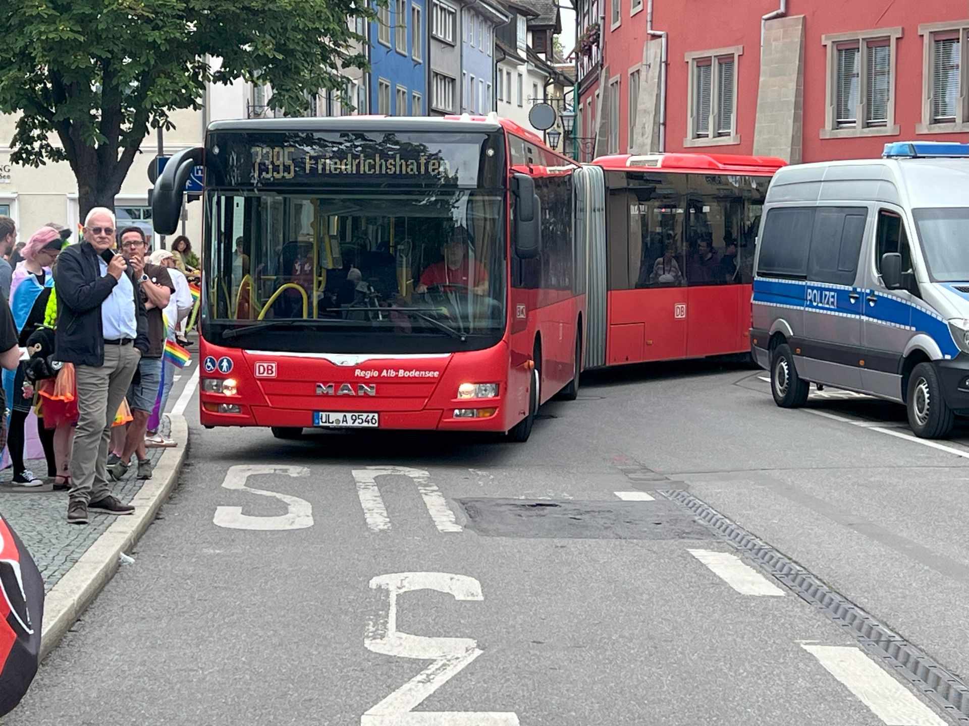 Es war dem Veranstalter Thorsten Peters wichtig, seinen Protest im direkten Umfeld der CSD-Kundgebung zu platzieren, dies hatte die Versammlungsbehörde im Einklang mit der örtlichen Polizei ermöglicht. Dass dieses Anliegen durchaus berechtigt war, zeigten sehr deutlich "Gummi-Penis“ und "Nackt-Arsch“. Bilder, die man aus Berlin kennt. Die gibt es jetzt auch aus Überlingen- aber da steckt "berlin“ ja schon im Name drin.