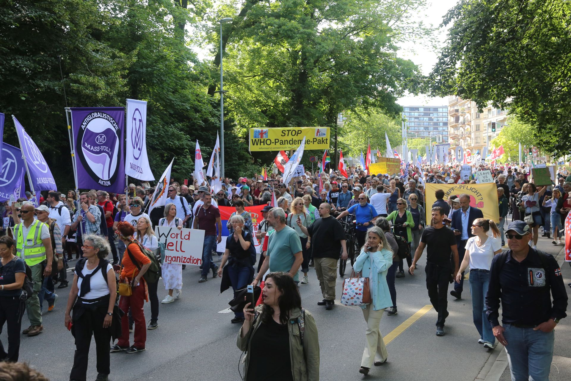 s!!z: Ja Hallo, hier ist Stef Manzini von stattzeitung.org. Einen schönen guten Morgen oder wann immer ihr das hier anschaut, liebe stattzeitungs-Leserinnen, liebe stattzeitungs-Leser. Wir sind gestern alle hier nach Genf gekommen, um Geschichte zu schreiben. Nicht weil die Demo so groß war oder die Themen ganz neu, es ging natürlich um die WHO, wir sind nach Genf gekommen aus allen Ländern der Welt. Brasilien, Belgien, die Niederlande, die Schweiz, natürlich als Gastgeber, Deutschland, ich hab nun ganz viele Länder vergessen, Österreich, aber auch von weit her sind die Menschen gekommen, von Australien. Und an meiner Seite sind jetzt Tammy und Kristen aus Michigan, USA, sie sind also auch über den "großen Teich“ gekommen. Sie sind Freiheitskämpferinnen der ersten Stunde, das ganze startete in der Corona-Pandemie und sie werden uns nun sagen, warum sie nach Genf gekommen sind. Ich führe dieses Interview auf Englisch, mein Englisch ist etwas besser als ihr Deutsch. Also, hallo Kristen und hallo Tammy, wir sind stolz, dass ihr für uns Zeit habt. Meine erste Frage ist, gestern schrieben wir hier in Genf Geschichte, nicht weil die Demo so groß war, sondern weil es die erste Demo ist, die Menschen von so vielen Ländern zusammenbringt. Ihr seid von Michigan mit einer langen Anreise gekommen. Kristen und Tammy arbeiten zusammen mit Del Bigtree für HighWire in USA und sind dort sehr bekannt. Ich fand es nun für unsere Leser interessant zu zeigen, wer ihr seid und warum ihr hier in Genf seid.