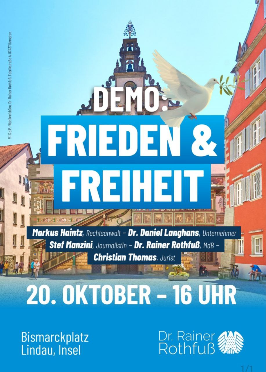 Pressemitteilung zur Kundgebung am 20. Oktober 2024 in Lindau für ”Frieden und Freiheit” von Dr. Rainer Rothfuß
