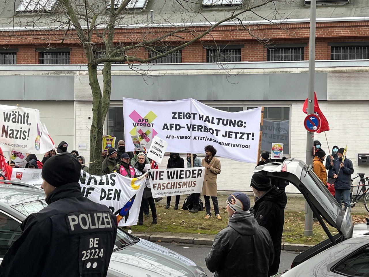 Nieder mit der Nazipest, schrien ein paar Demonstranten vor der Bundesgeschäftsstelle der AfD in Berlin.