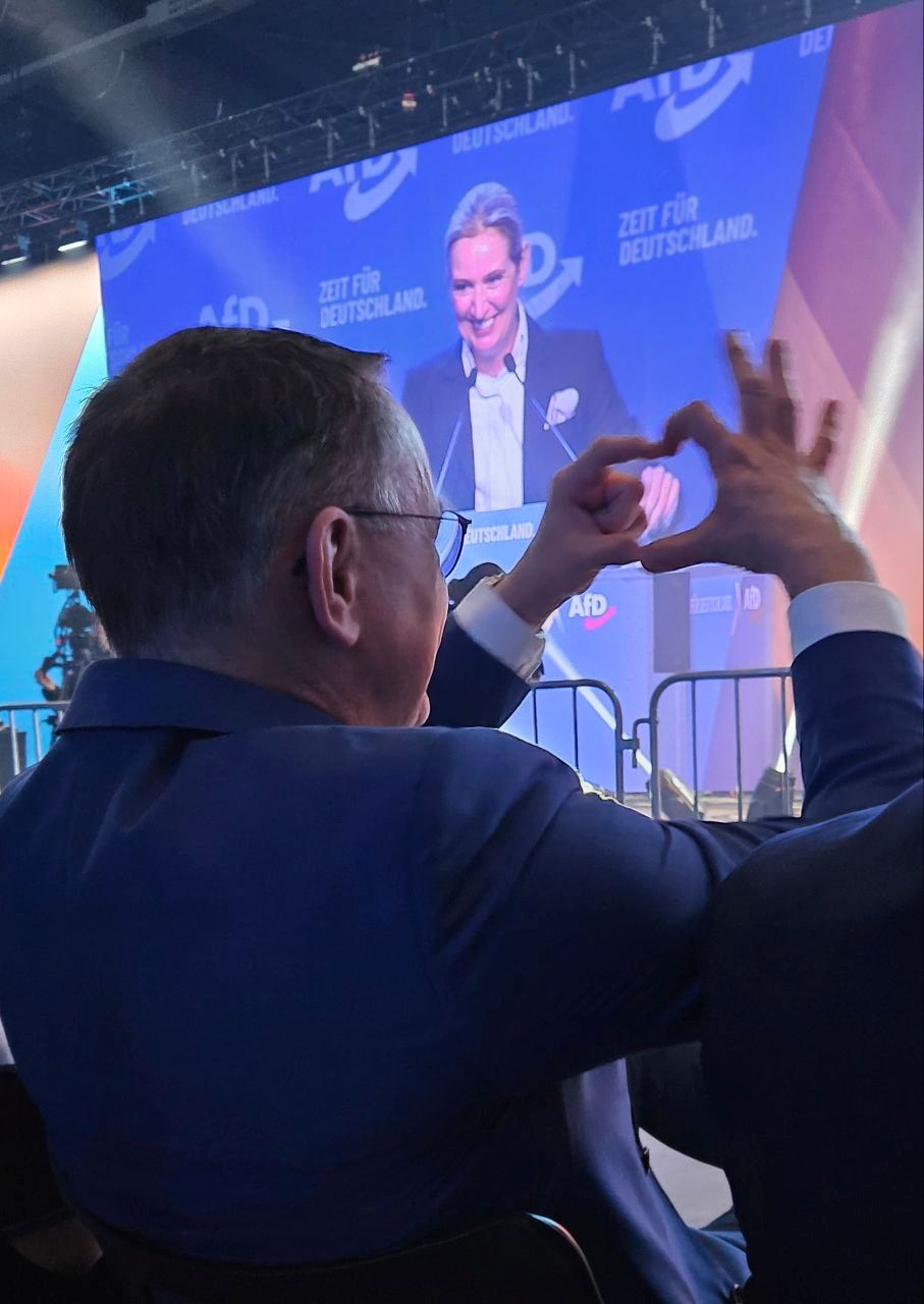 4.500 Menschen, viele weit angereist, schwenkten Deutschlandfahnen und Herzen, für ihre Kandidatin der Herzen. Die Messehalle in Halle war im positiven Ausnahmezustand, und Weidel lieferte. Sie vergaß nicht ihrem Co-Chef Tino Chrupalla auch Herzchen zuzuwerfen, denn der hatte nicht nur eine fulminante Rede gehalten, sondern seinem Stolz über eine geeinte Partei und ihre fantastische Kanzlerkandidatin Ausdruck verliehen.
