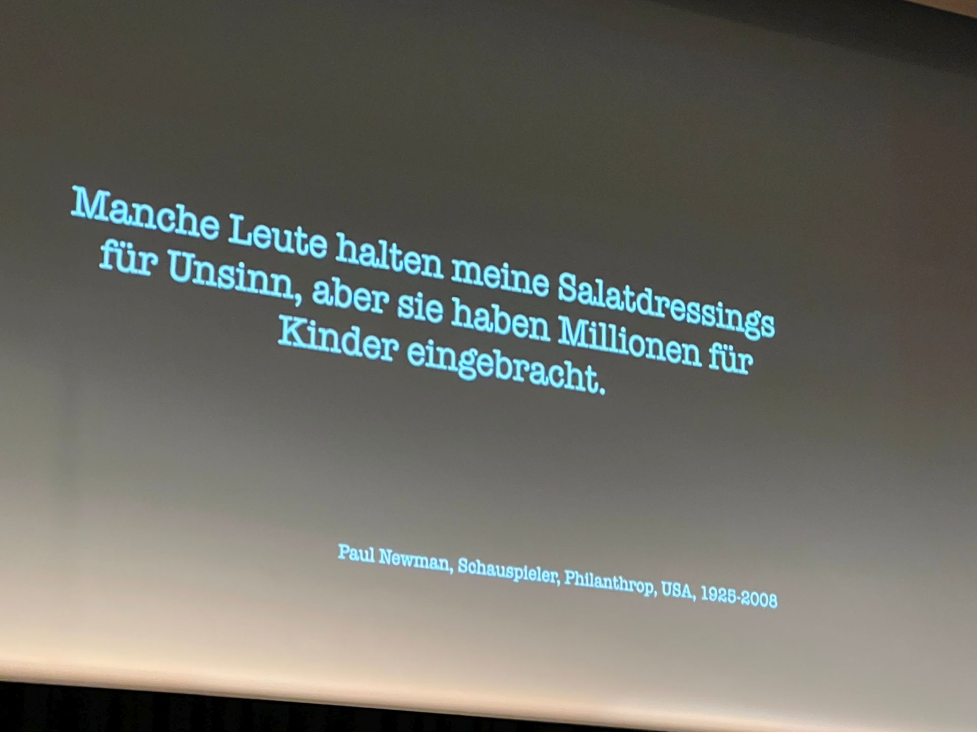 Der größte Impfschaden ist für Kayvan, dass wir einander nicht mehr trauen, so sagt er es den Gästen des Abends. Ein paar Zitate, 1.500(!) bringt er seinem Publikum mit, und freut sich das eines von Paul Newman vom Zufallsgenerator ausgewählt wurde: Der Hollywood-Schauspieler machte ein Vermögen von über 200 Millionen Dollar mit seinen Salatsaucen, und machte sich einmal darüber lustig, das Intellektuelle sich darüber mokierten. ”Manche Leute halten meine Salatdressings für Unsinn, aber sie haben Millionen für Kinder eingebracht”. Paul Newman. Salatsaucen. Ach wie banal. Immerhin spendete er so ein Vermögen an einen guten Zweck, das hat er den meisten dieser Intellektuellen voraus. Und noch viel mehr möchte man meinen, denn wann hat eine Salatsauce je Schaden angerichtet?