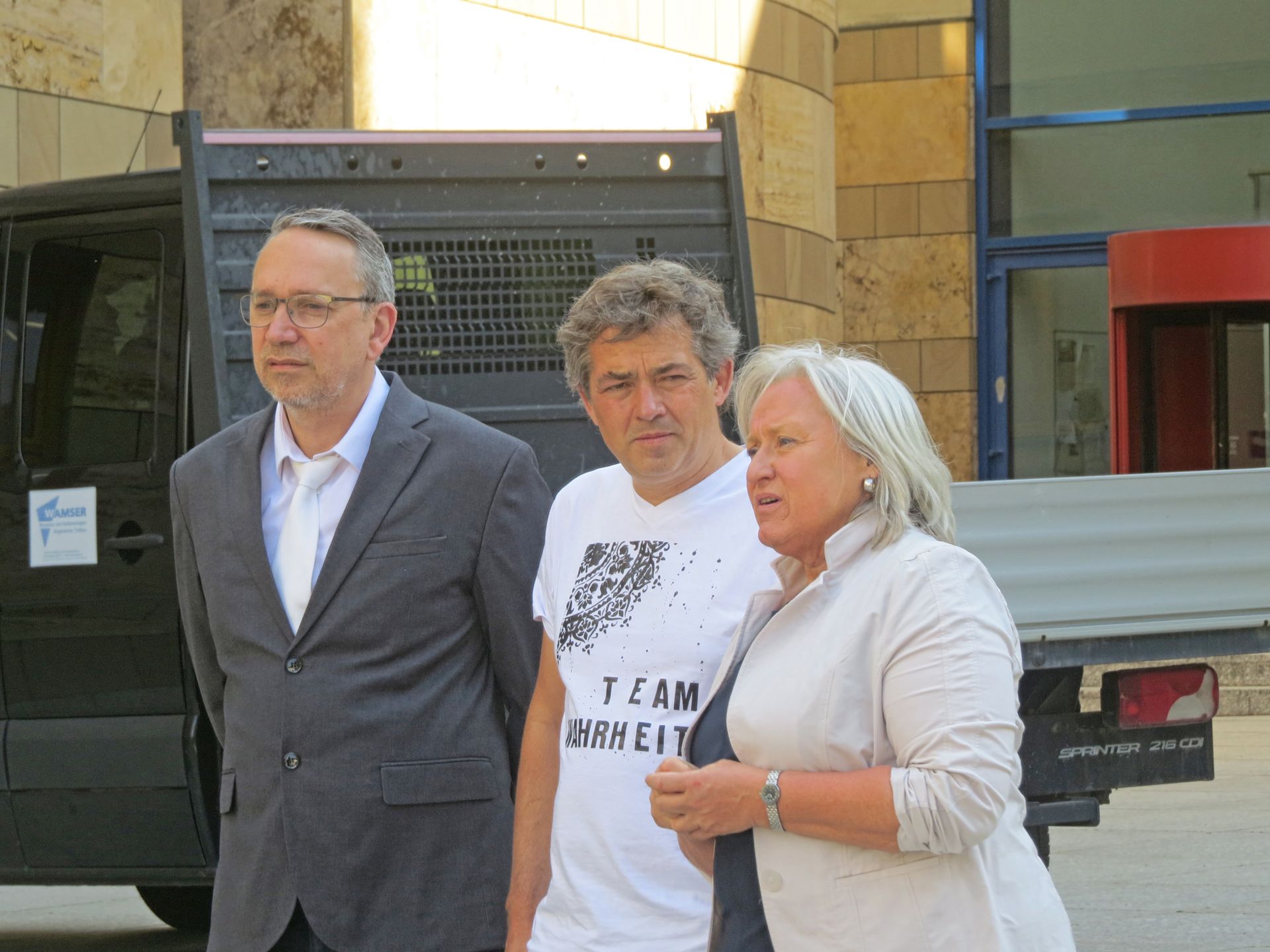 Nach einer Pause von knapp vier Stunden (!) ging es weiter, und da zerstörte im wahrsten Sinne des Wortes eine Sprengung das Vertrauen in die Arbeitsweise der Polizei und Staatsanwaltschaft. Zeuge Jürgen H., der die Veranstaltungstechnikfirma ”VTS” führt, berichtete von seinen geschäftlichen Verbindungen mit Ballweg hinsichtlich der Lieferung von Materialien für diverse Protestaktionen. Dabei führte er aus, dass er wegen seiner Lieferungen gesellschaftlich in die rechte Ecke gestellt wurde.