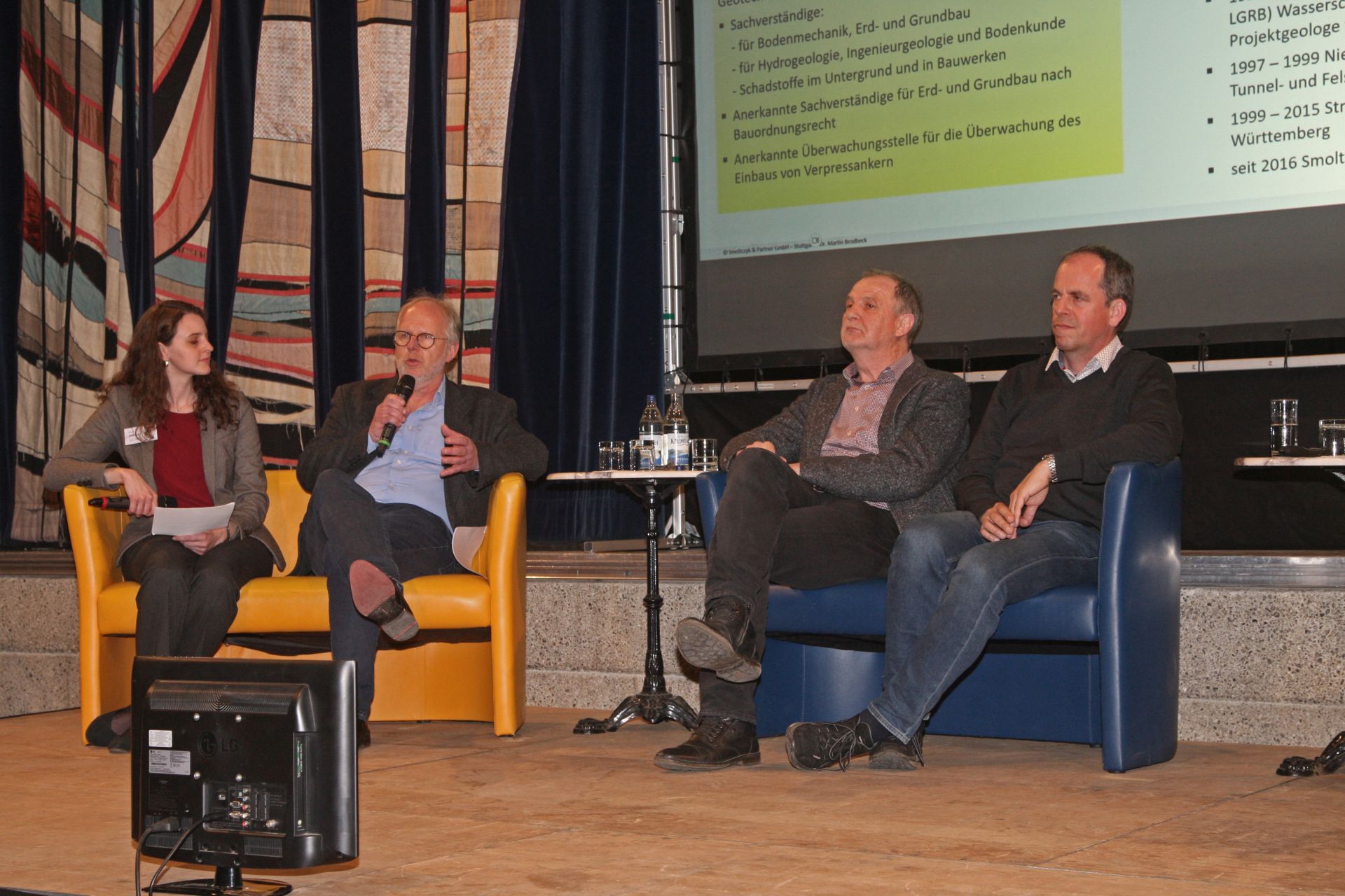 Prof. Dr. Nico Goldschneider vom Karlsruher Institut für Technologie, Dr. Hermann Schad vom Zweckverband Wasserversorgung Baienfurt-Baindt und Dr. Martin Brodbeck, geschäftsführender Gesellschafter des beauftragten Gutachterbüros für Boden und Wasserschutz des Windparkprojekts waren die Referenten.