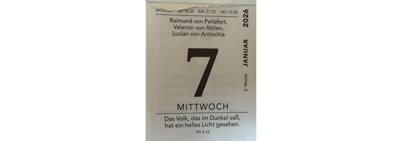 ”Das Volk, das im Dunkeln saß, hat ein helles Licht gesehen (Mt 4,16) steht auf meinem heutigen Kalenderblatt. Ja? Wann denn? Ich werde nicht aufhören, daran zu glauben, dass dem Volk endlich ein Licht aufgeht!